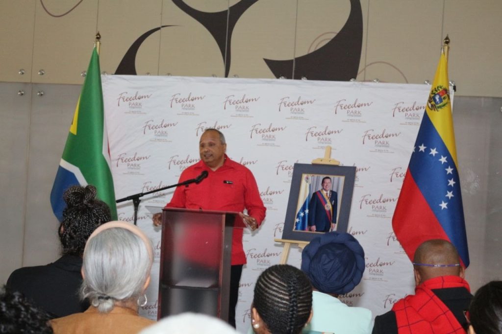 El acto fue instalado por la directora del Freedom Park, Jane Mafumadi, siendo seguida por intervenciones del embajador de Venezuela en Sudáfrica, Carlos Feo Acevedo; el presidente de la Unión Sudafricana de Solidaridad con Venezuela (SASUVE), Zolani Mkiva; y el profesor Tomás Camacho, del Centro Nacional de Estudios Históricos.